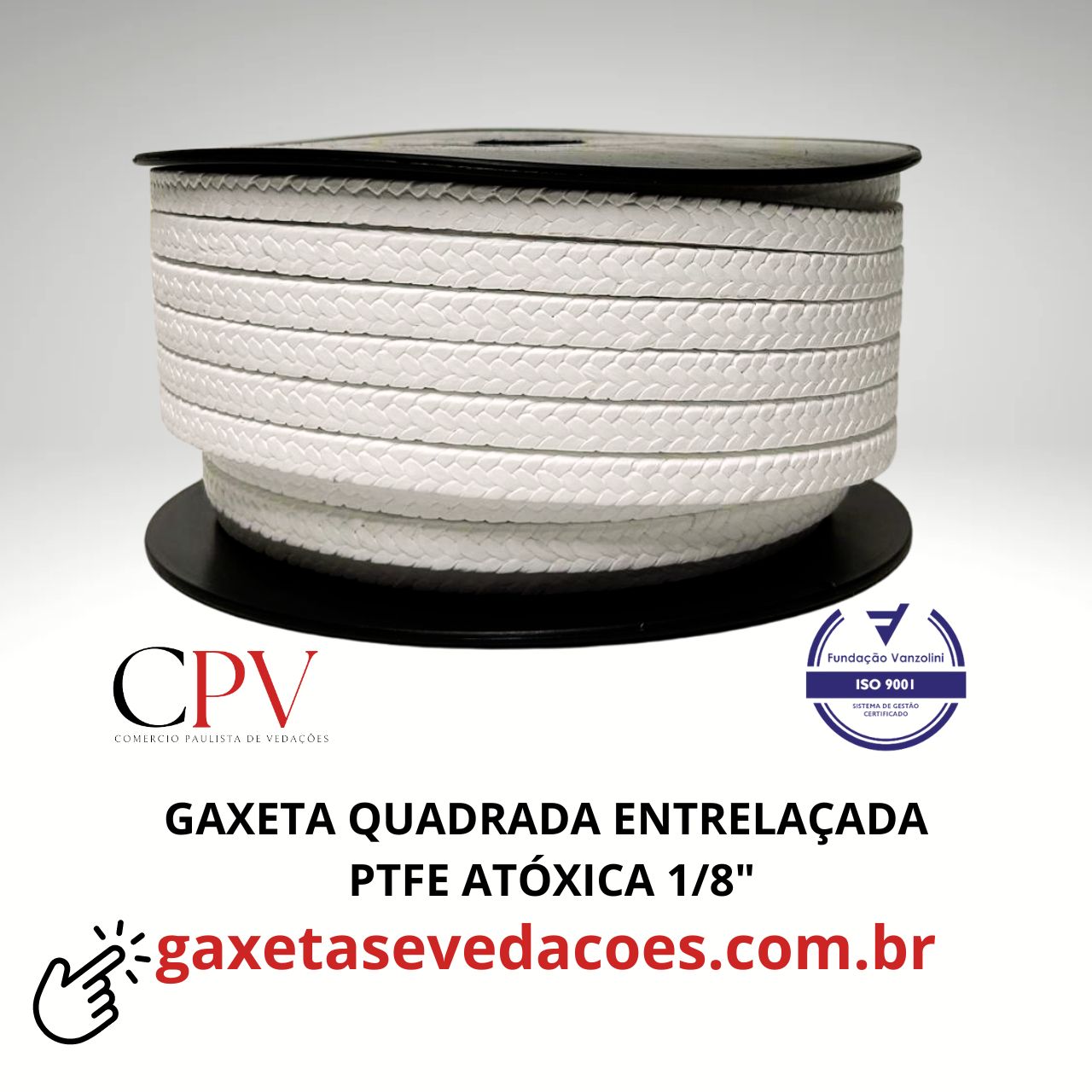 Gaxeta Quadrada entrelaçada de PTFE e Teflon Atóxico 1/8" ou 3,17 mm Código - 14005